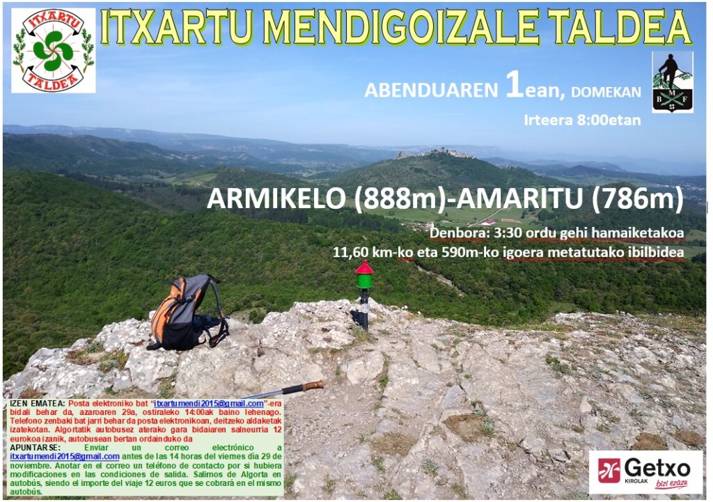 Posta elektroniko bat itxartumendi2015@gmail.com -era bidali behar da, azaroaren 29a, ostiraleko 14:00ak baino lehenago.. Telefono zenbaki bat jarri behar da posta elektronikoan, deitzeko aldaketak izatekotan. Algortatik autobusez aterako gara bidaiaren salneurria 12 eurokoa izanik, autobusean bertan ordainduko da.