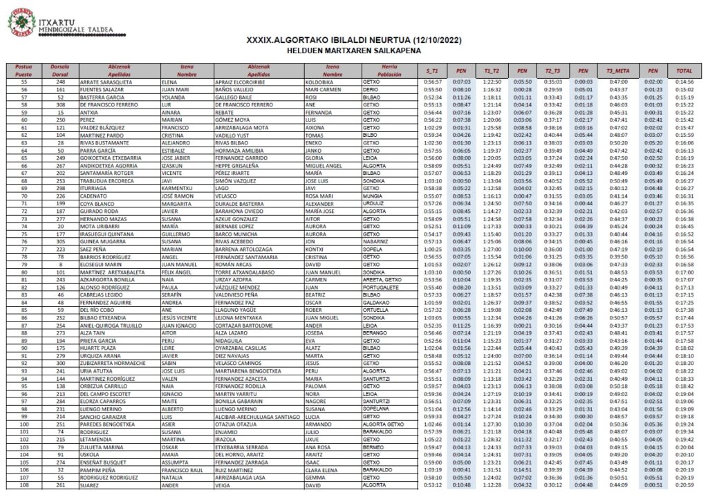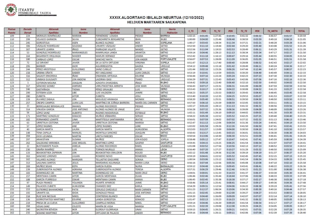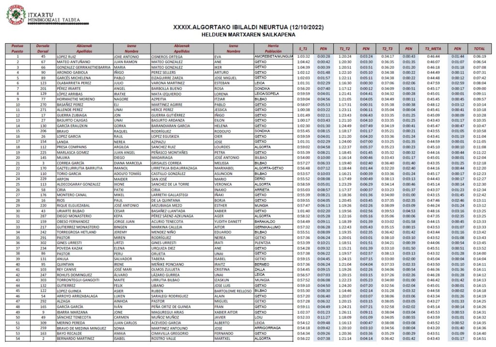 despues clicar en el año 2022 y buscar cronológicamente la XXXIX. Algortako Ibilaldi Neurtua