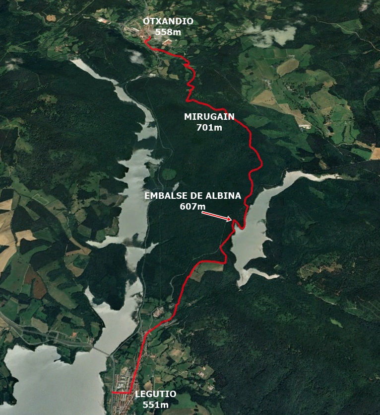 Legutianotik Otxandiorainoko zeharbidea Albina urtegitik eta Mirugaineko pagadietatik pasatuz, ikusi oharrak.