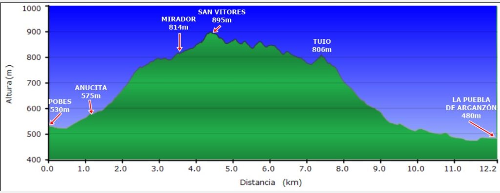 Dificultad: Media para personas con preparación media, 520m metros de desnivel ascendente acumulado. Recorrido de 12,2 Km y 3:30 horas de duración más paradas.