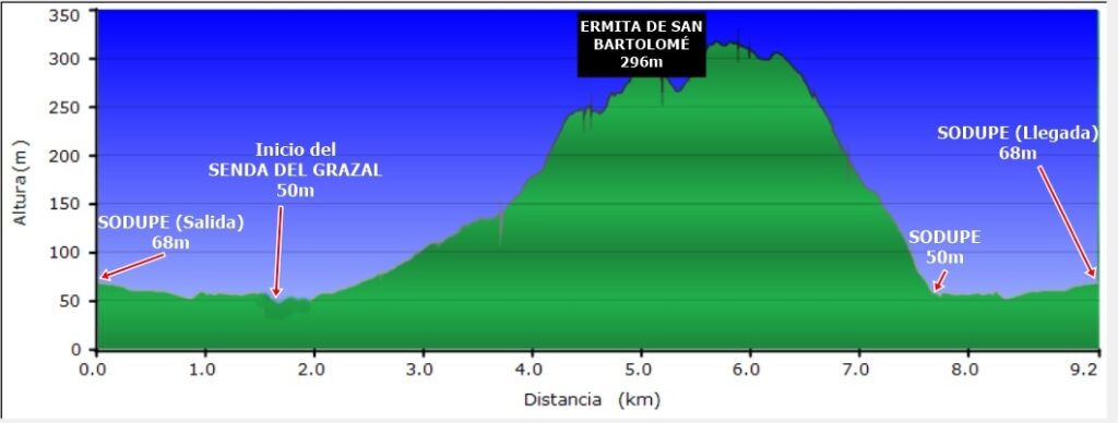 Dificultad: Fácil para personas con preparación media y Media-Dura para personas con baja preparación, 380m metros de desnivel ascendente acumulado. Recorrido de 9,2 Km y poco más de 3:15 horas de duración más paradas.