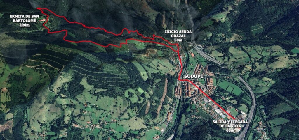 SODUPE-etik ibilbide zirkularra, Grazal errekaren bidexkatik, San Bartolome baselizatik pasatuz eta itzulera, ikusi oharrak.