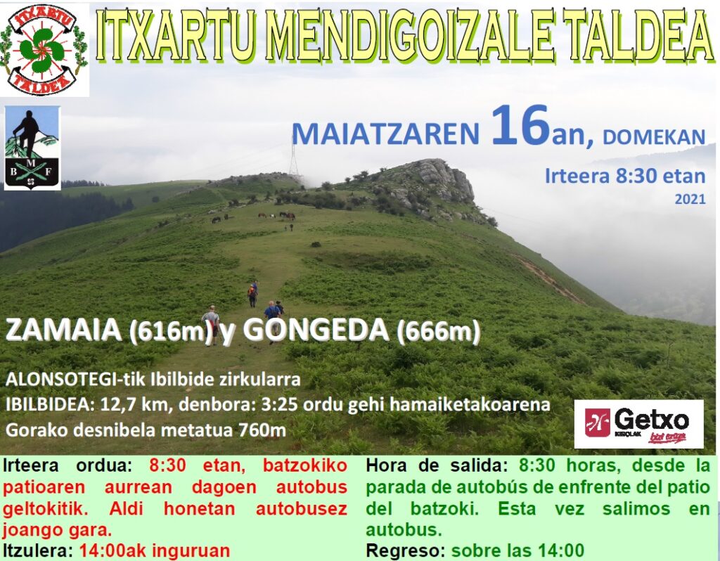 ZAMAIA (616m) eta GONGEDA (666m) (Mendi-irteera, 2021eko maiatzak 16a)